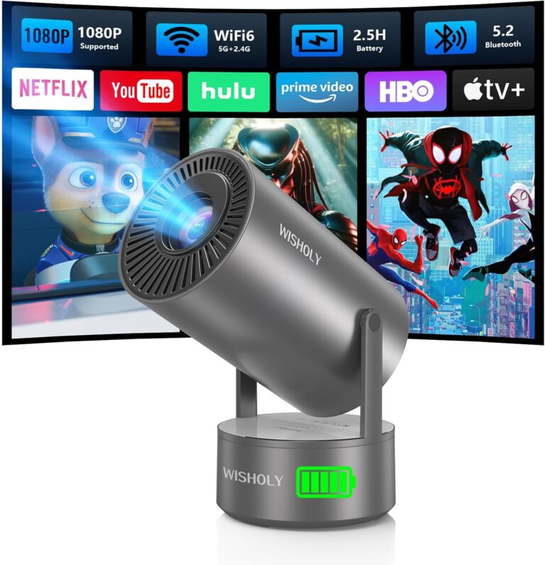 Portable Projector with Built-in Battery for Outdoor & Travel, Mini Projector with WiFi and Bluetooth, 1080P