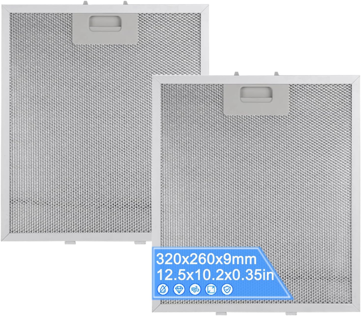 2 Pack Cooker Hood Filter Replacement 320x260x9mm, 5 Layer Extractor Fan Filters Mesh, Cooker Replacement Filter, Universal Replacement Cooker Hood Filter Compatible with Most Range Hoods