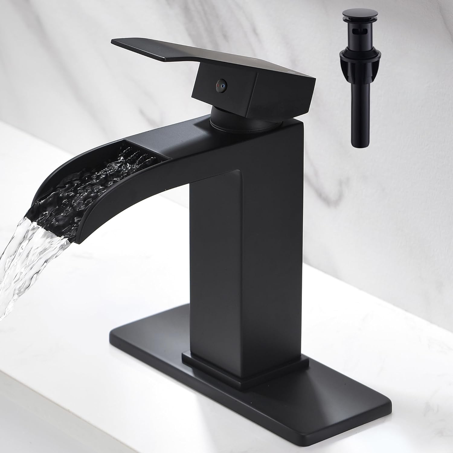 4in waterfall bathroom faucet black