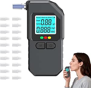 Breathalyzer Alcohol Tester with Fast & Accurate Sensor, Smart Alert System with LCD Display, Portable Design for Home & Road Trips – Includes 20 Mouthpieces