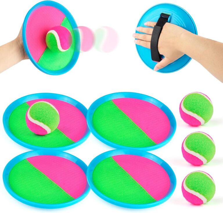 Toss and Catch Ball Set with 4 Paddles and 4 Balls for Kids Ages 3 and Up, Classic Velcro Ball and Catch Game for Garden Games, Outdoor Toys, Beach Games and Family Fun