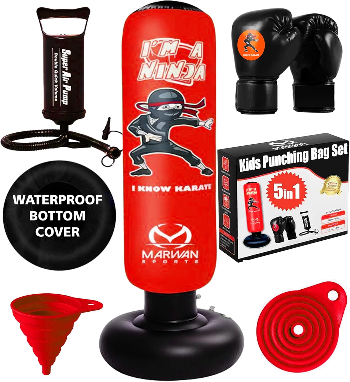 Marwan Sports Kids Punching Bag Toy Set, Inflatable Boxing Bag Toy for Boys Age 3-12, Ninja Toys for Boys