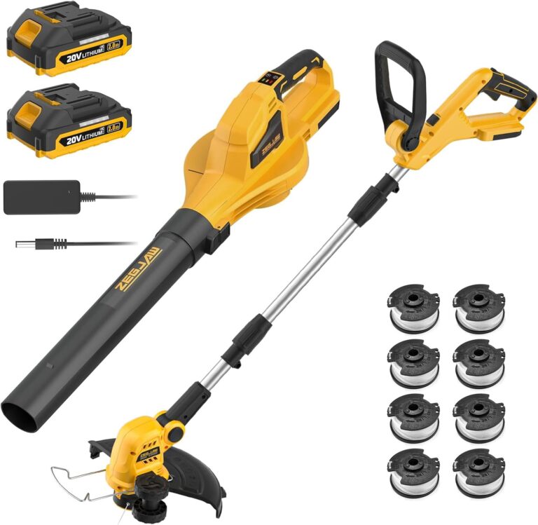 2-in-1 Leaf Blower + 12-Inch 20v Cordless String Trimmer Combo Kit, 8 Pcs Replacement Spools