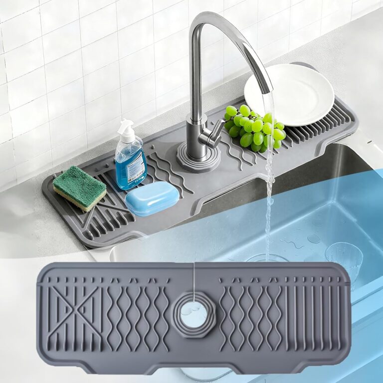 16.9″ Longer Silicone Faucet Mat for Kitchen Sink, Water Draining Mat Kitchen Sink Faucet Mat