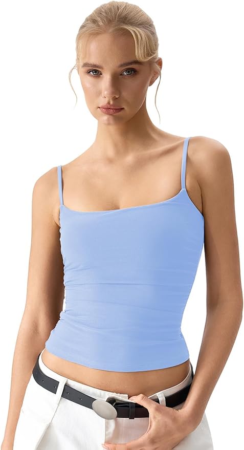 the QINSEN Store QINSEN Women’s Mesh Camisole Tank Top Double Lined Spaghetti Strap Sleeveless