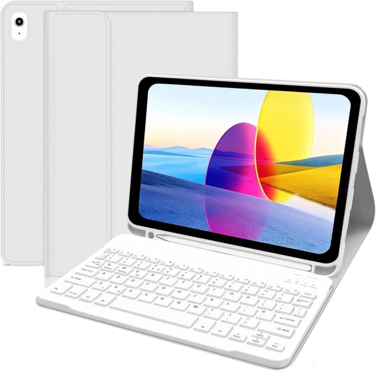 Keyboard Case for iPad (A16) 11th Generation 11inch, Detachable Wireless Bluetooth Keyboard, with Pencil Holder, Long Working Time, Rechargeable Keyboard Cover, White