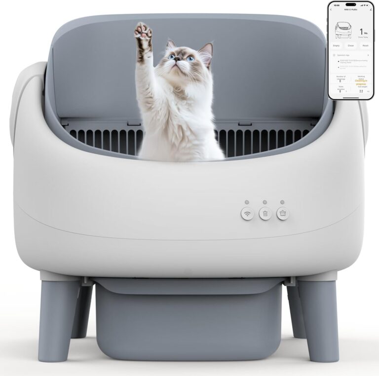 Self Cleaning Cat Litter Tray, Open-Top Automatic Cat Litter Box with APP Control, Dual Safety Sensors Anti-pinch Smart Robot