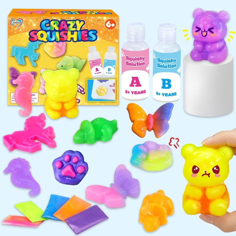 Carolart Make Your Own Squishies Animal Toys,6 Rubber Characters Making kit,Glow-in-The-Dark Science Activity kit, Silicone Squishies Craft Kit