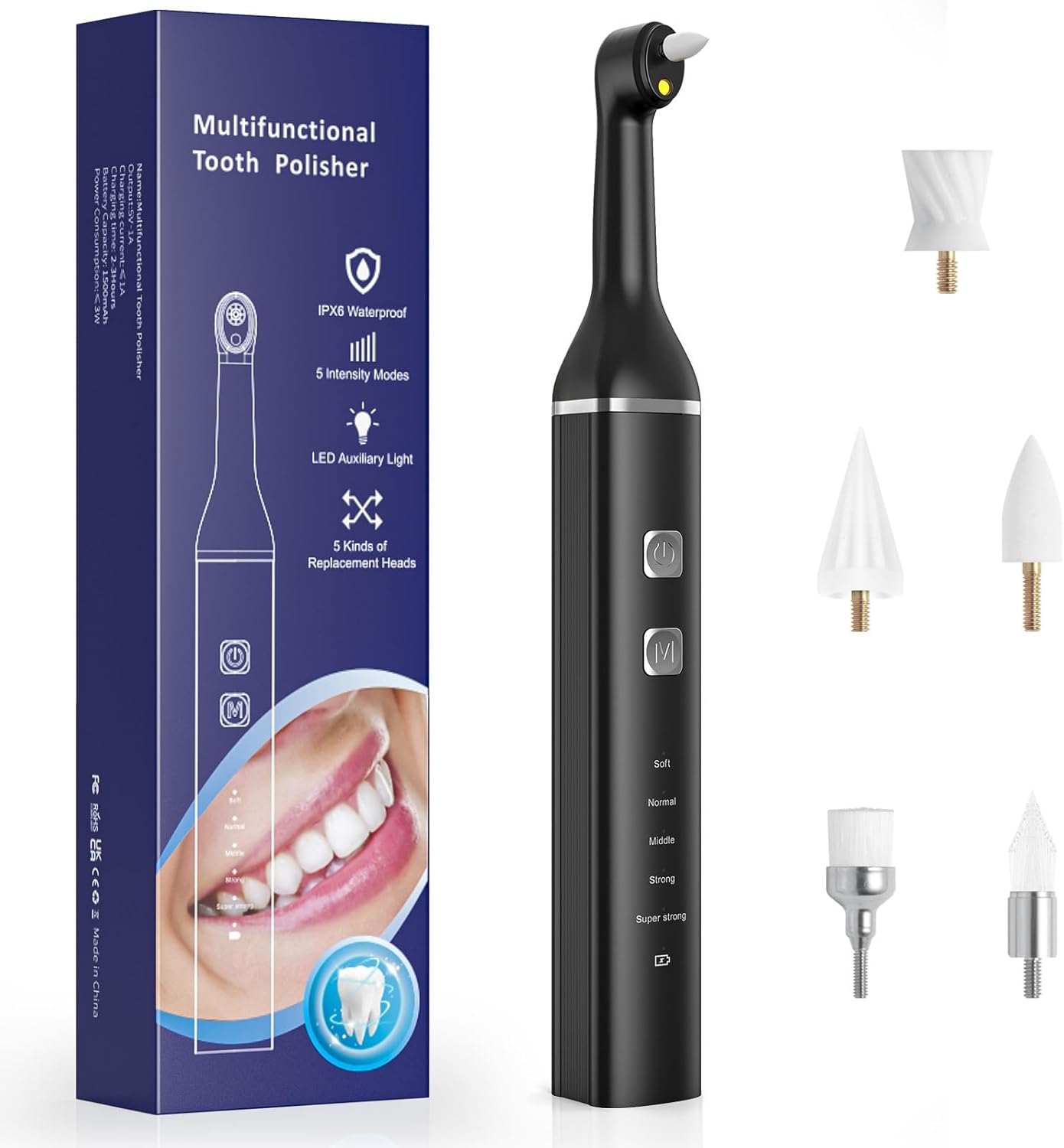 Zahnsteinentferner Zahnaufhellungsset Professionell, Zahnpolierer mit 5 Modi für Zahnreinigung & Zähne Aufhellen, zum Polieren nach der Zahnreinigung, Zahnaufhellung Bleaching Set mit 5 Köpfen